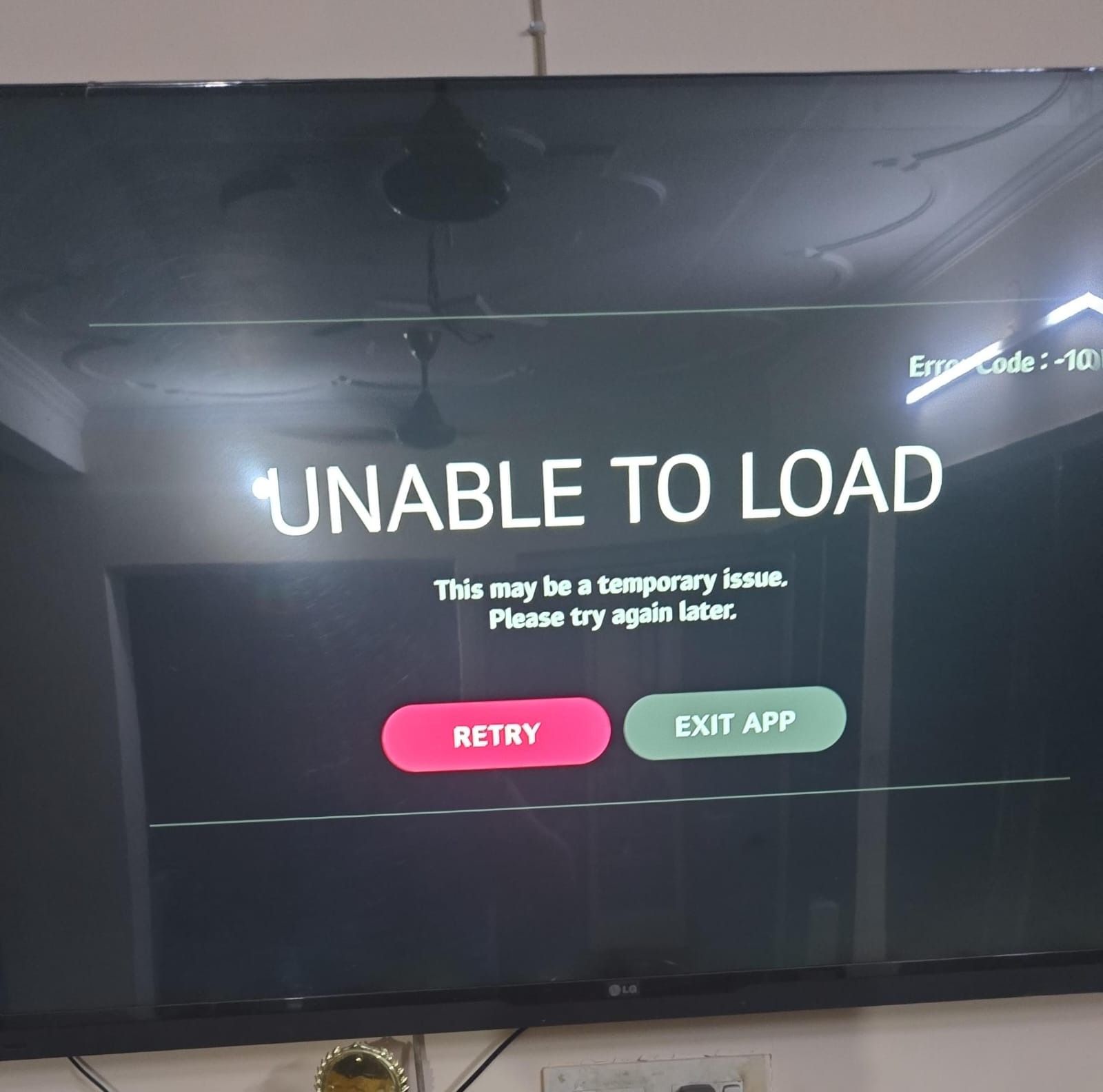 We are experiencing a consistent issue with our LG WebOS application where the app displays an “Unable to Load – This may be a temporary issue. Please try again later.” error message.